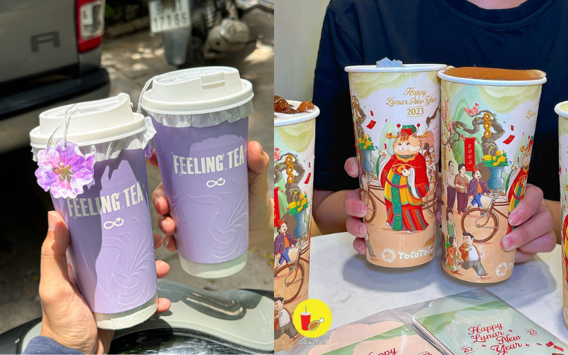 Một chiếc ly giấy take away đẹp, được thiết kế chỉn chu và mang dấu ấn thương hiệu có thể giúp quán trà sữa ghi điểm ngay từ ánh nhìn đầu tiên. Đó là lý do vì sao các thương hiệu như Gong Cha, Tocotoco hay Ding Tea, Feeling Tea đều đầu tư mạnh vào bao bì đặc biệt là ly giấy.
