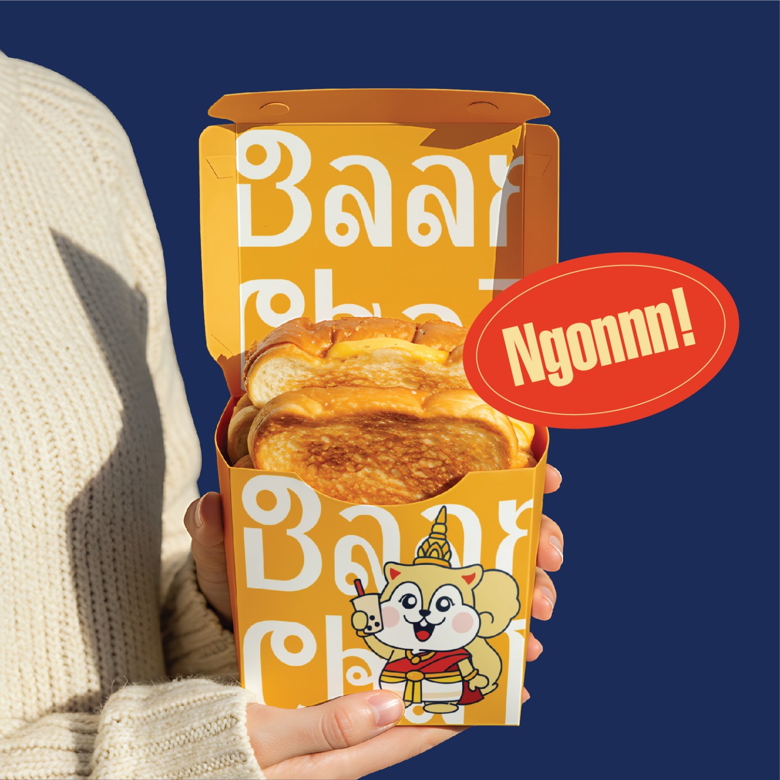 Masot được xây dựng với biểu cảm tươi tắn, đôi mắt long lanh và chiếc ly trà sữa cầm trên tay như đang rủ rê: “Chà một ly cho đời thêm vui nè!”. Bộ trang phục đỏ - vàng nổi bật không chỉ gợi nhắc đến tinh thần Thái Lan rực rỡ mà còn tạo điểm nhấn thị giác mạnh mẽ, giúp thương hiệu nổi bật giữa hàng loạt quán trà sữa ngoài kia.
