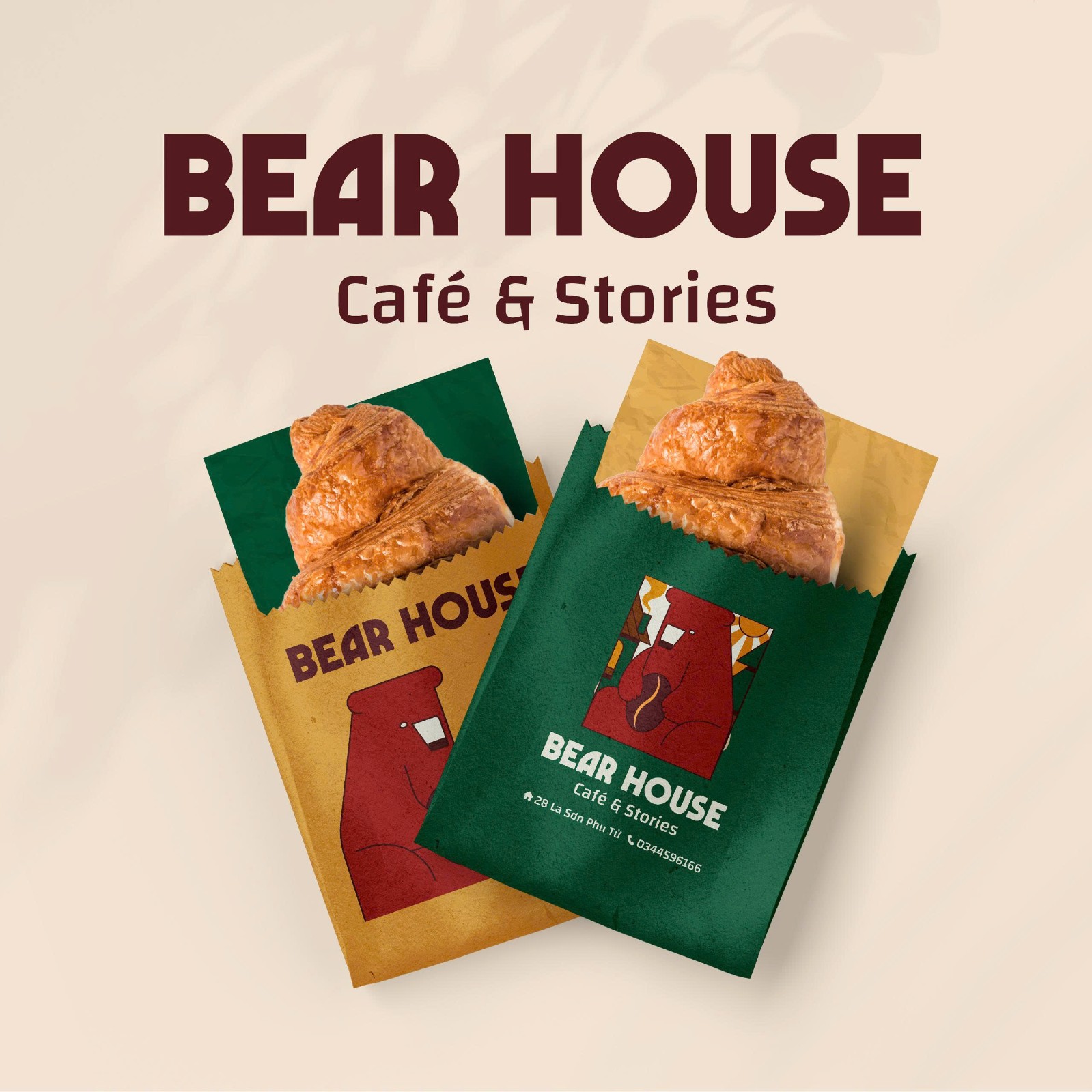 Giữa nhịp sống hối hả, Bear House hiện lên như một quán nhỏ nép mình bên rừng - nơi những câu chuyện được ủ ấm trong hương cà phê thơm dịu. Lấy cảm hứng từ hình ảnh chú gấu hiền hòa ôm hạt cà phê trong vòng tay, logo Bear House được Kaiza thổi hồn bằng phong cách trẻ trung, hiện đại nhưng vẫn chan chứa nét mộc mạc và ấm áp.