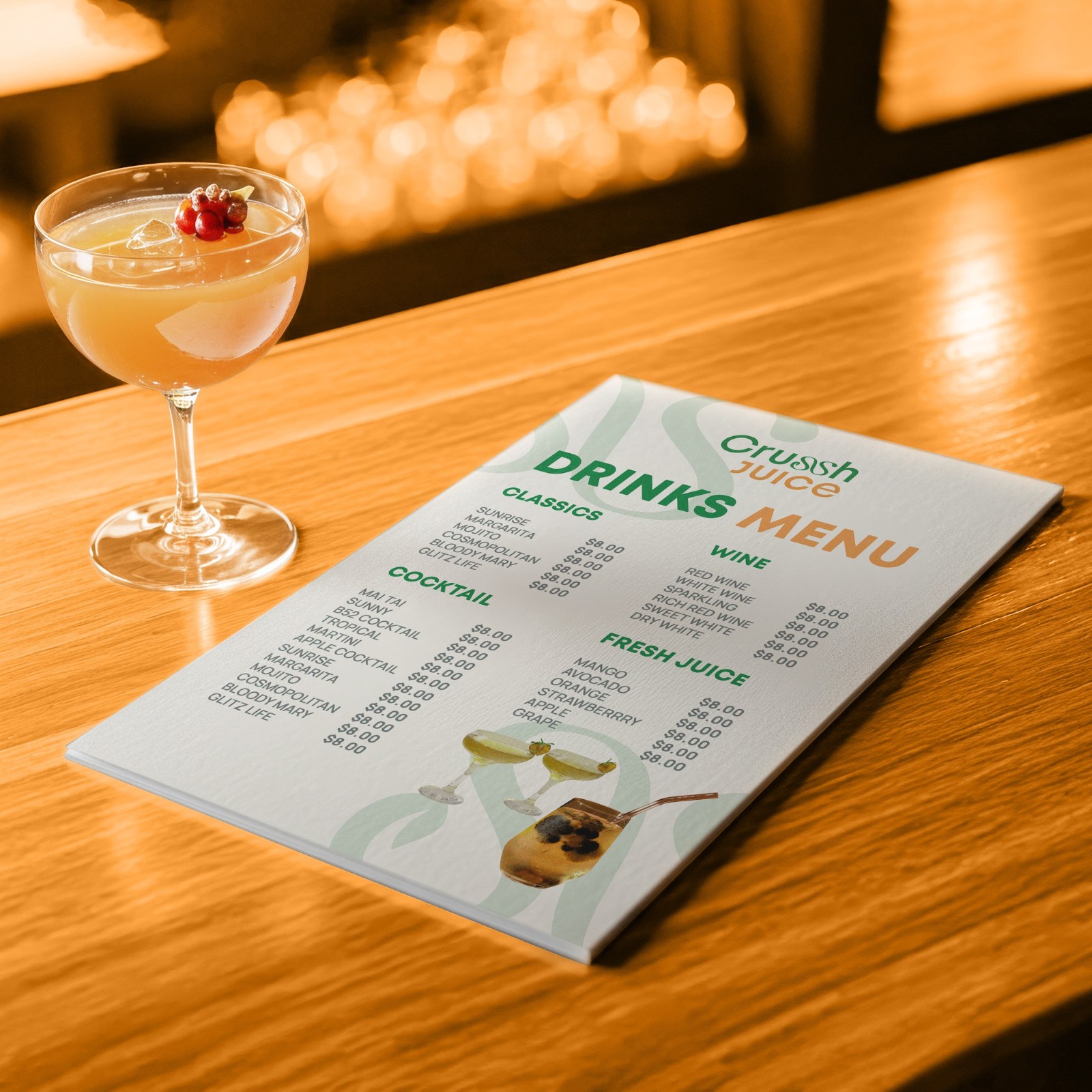 Phần typography của logo được thiết kế theo hướng hiện đại nhưng vẫn giữ được sự mềm mại cần thiết. Những đường cong uyển chuyển trong chữ tạo nên cảm giác organic, gợi liên tưởng đến dòng nước ép tươi đang chảy. Điểm nhấn ở chi tiết chữ cách điệu giúp logo trở nên sinh động hơn, đồng thời tăng khả năng ghi nhớ cho thương hiệu khi xuất hiện trên bao bì, menu hay các nền tảng truyền thông.