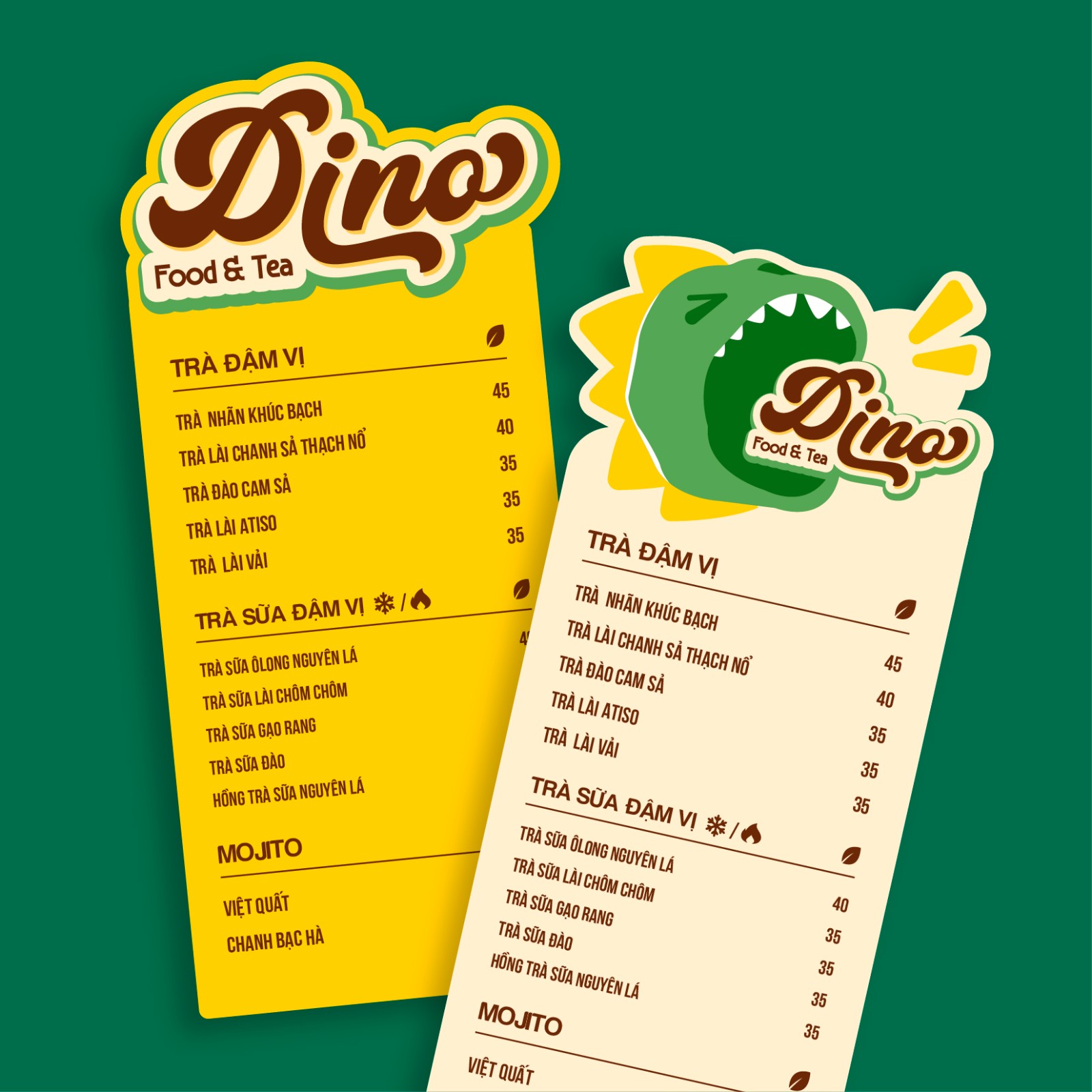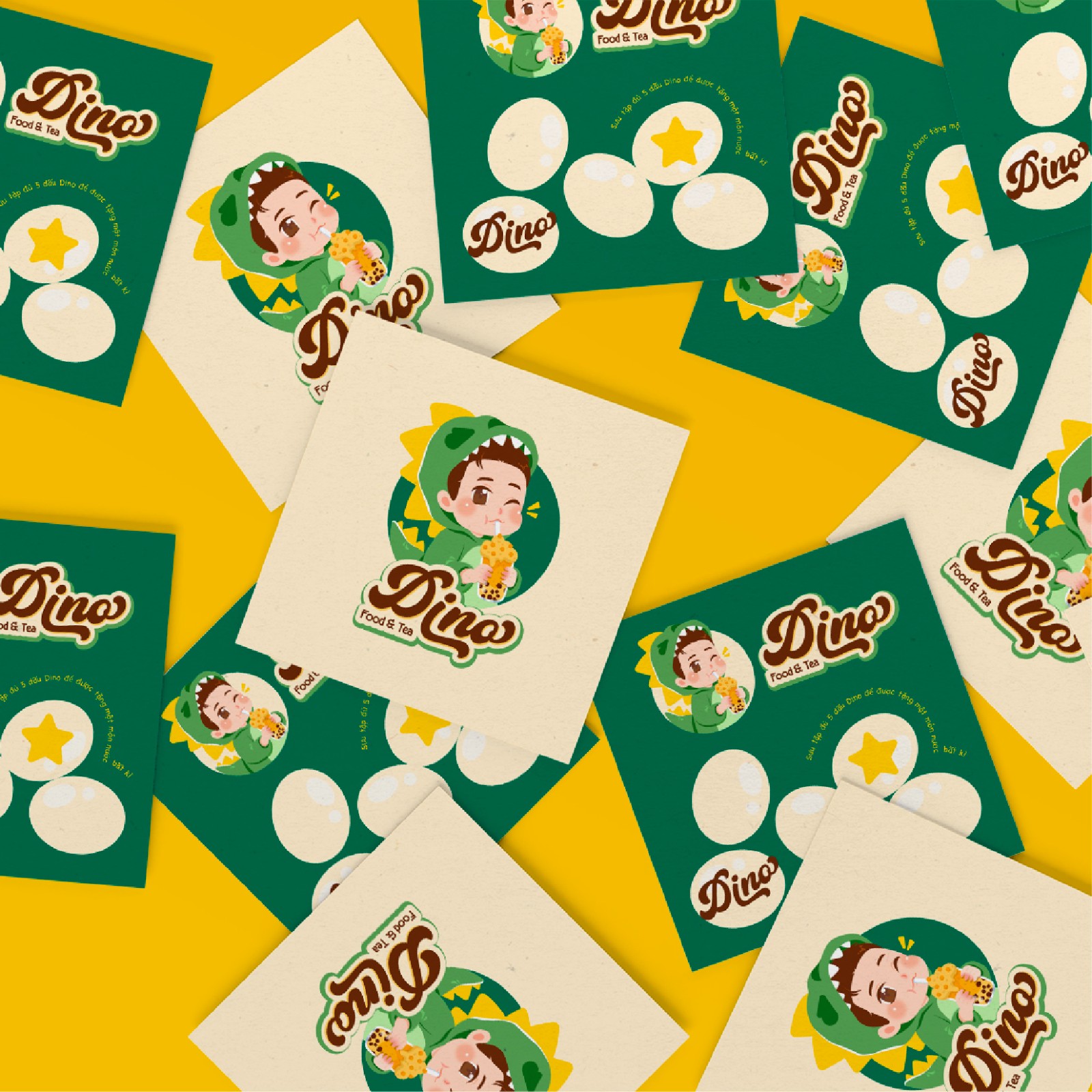 Với sự kết hợp giữa nhân vật mascot, bảng màu vui tươi và typography độc đáo, Kaiza mang đến cho Dino Food & Tea một logo không chỉ dễ thương mà còn dễ ghi nhớ, đảm bảo tính nhận diện mạnh mẽ trên mọi ấn phẩm từ biển hiệu, ly đựng, bao bì.
