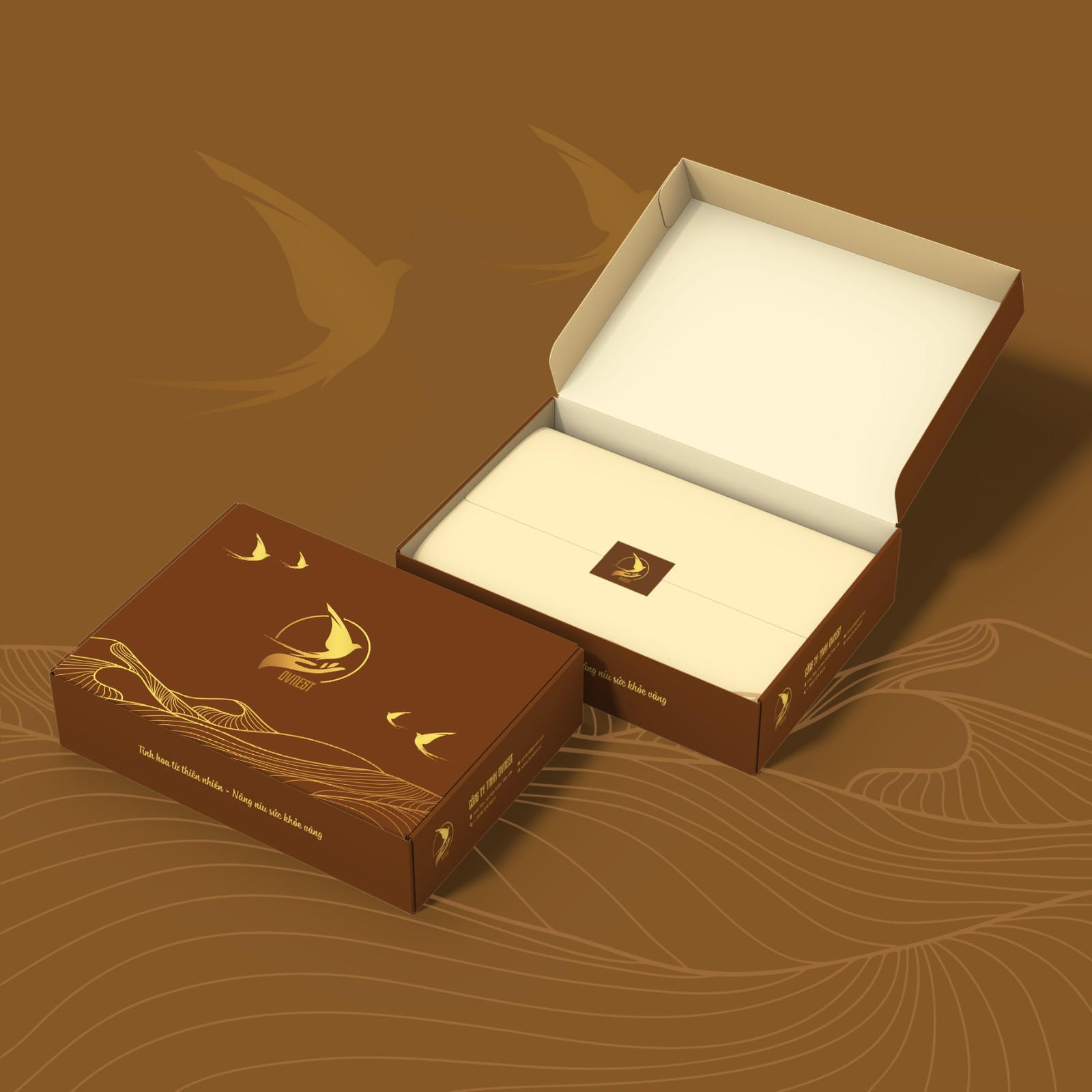 Đường nét uyển chuyển của đôi cánh được cách điệu mềm mại, tạo cảm giác tự do và lan tỏa năng lượng tích cực. Hình vòng tròn khép kín bao quanh không chỉ là biểu trưng của sự trọn vẹn mà còn gợi lên cảm giác an toàn, bền vững như chiếc tổ ấm của yến, nơi khởi nguồn của sức sống.