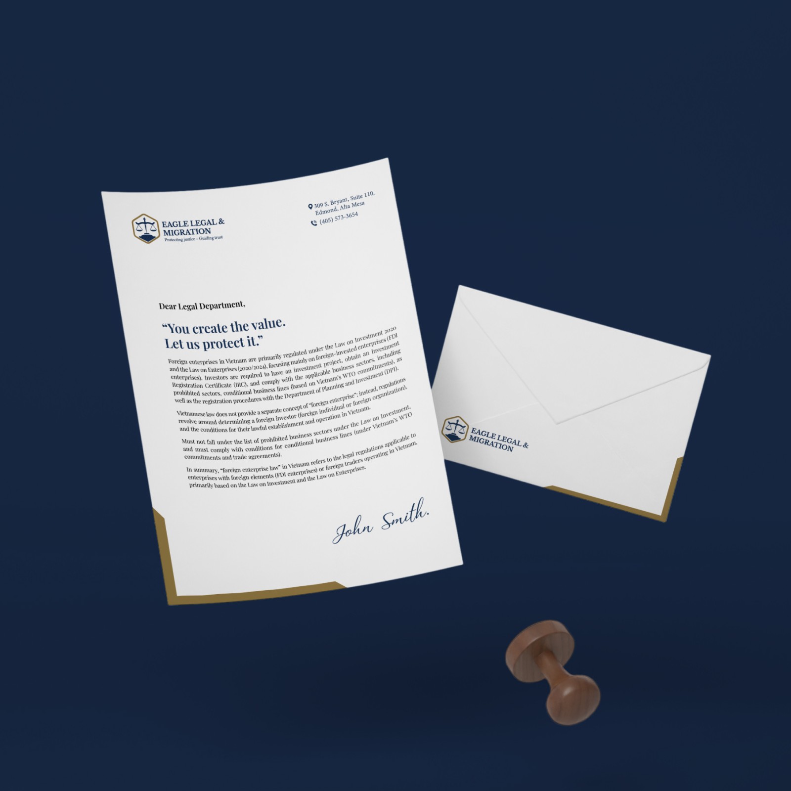 Một logo mạnh mẽ và chuẩn mực luôn là điểm chạm đầu tiên tạo nên sự khác biệt. Khi bắt tay vào dự án Eagle Legal & Migration, Kaiza đặt trọng tâm vào việc khắc họa tinh thần của một thương hiệu pháp lý - di trú: vững vàng trong chuyên môn, rõ ràng trong định hướng và luôn đứng về phía công lý.