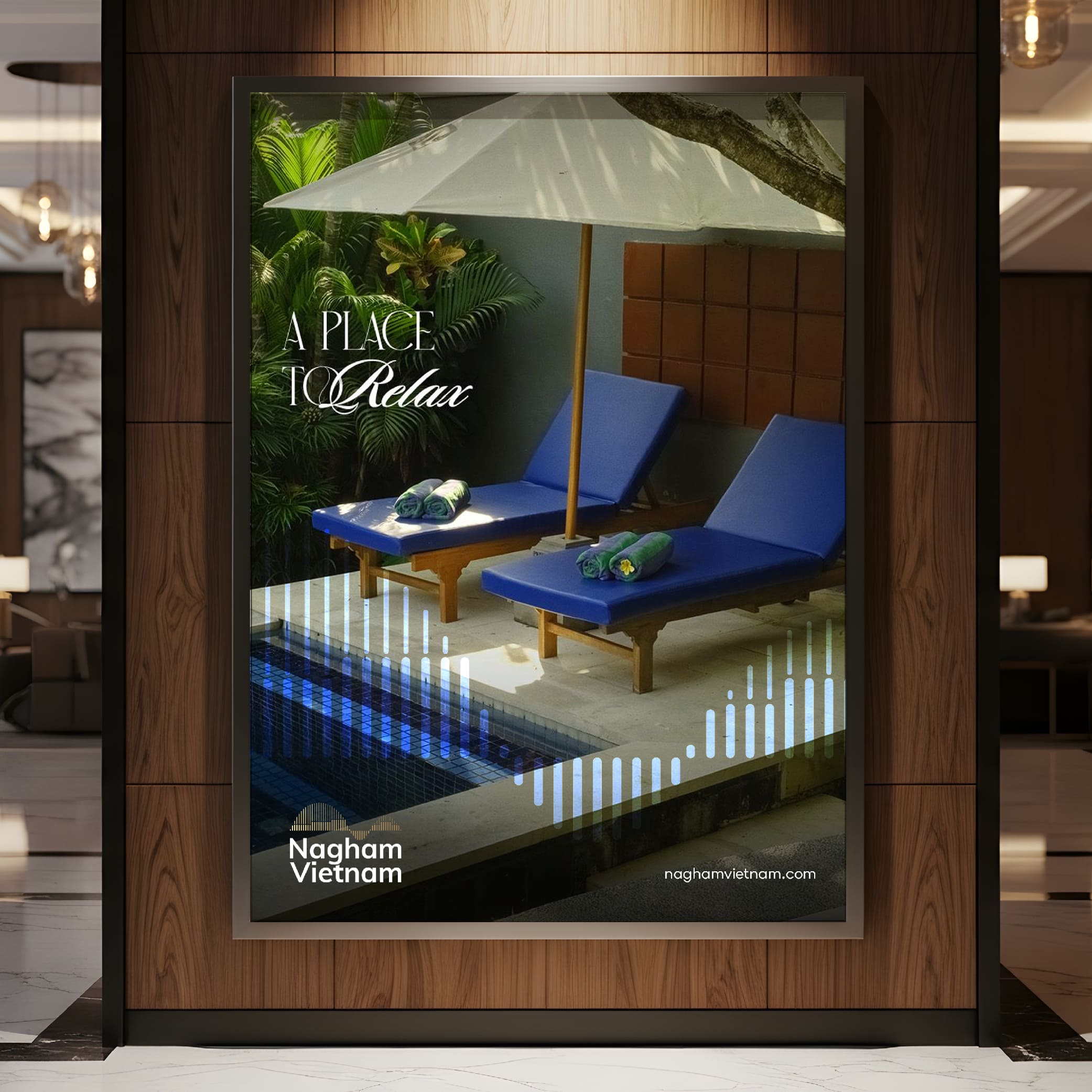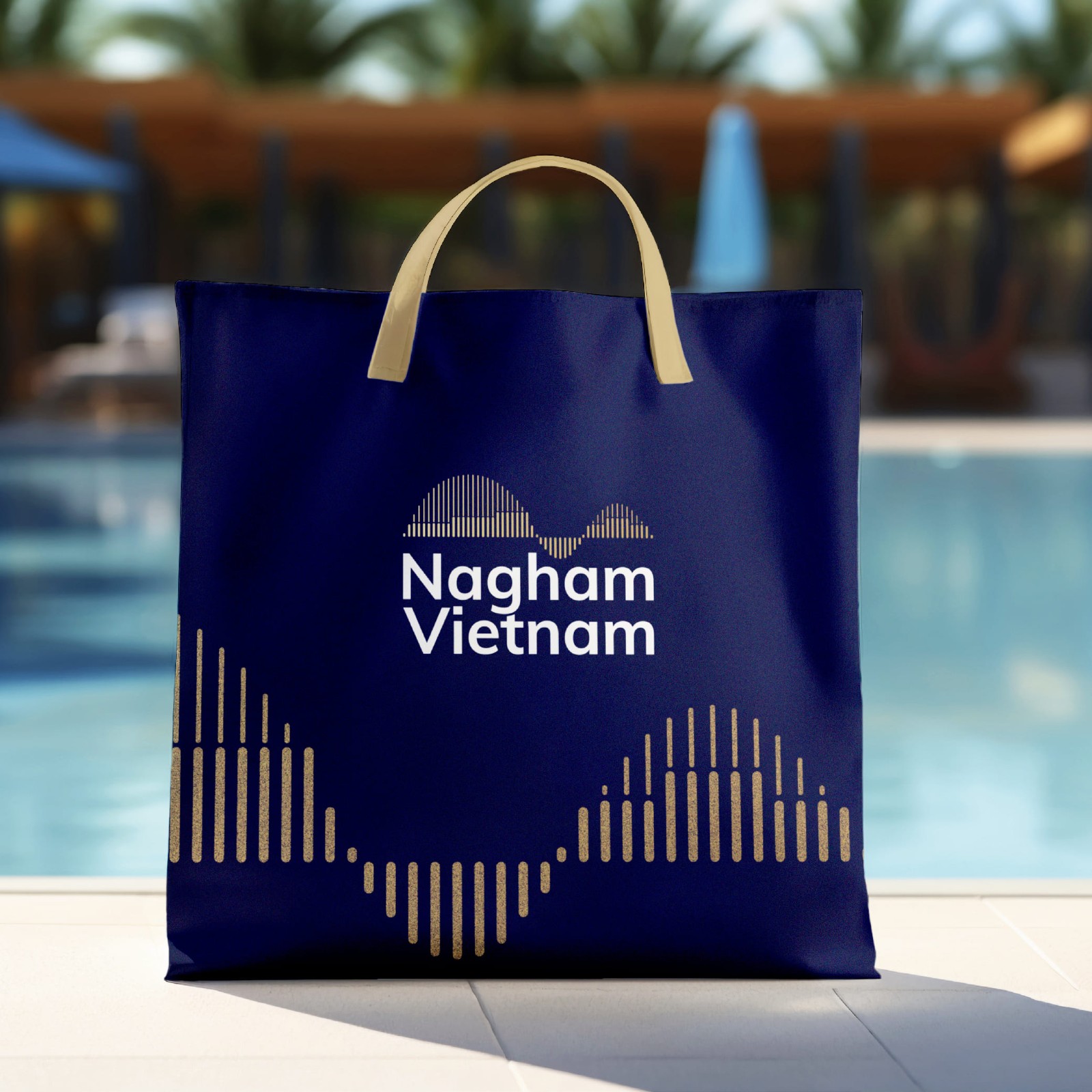 Sức sống của thương hiệu được gói gọn trong biểu tượng là sự giao thoa nhịp nhàng giữa hơi thở thiên nhiên và hình ảnh dãy núi uốn lượn, nơi dấu ấn chữ “N” đại diện cho Nagham Vietnam hiện lên một cách đầy khéo léo. Các đường nét kết nối liền mạch, tựa như một bản nhạc không biên giới, nơi trải nghiệm đô thị và âm hưởng văn hóa hòa quyện thành một tổng thể giàu cảm xúc.