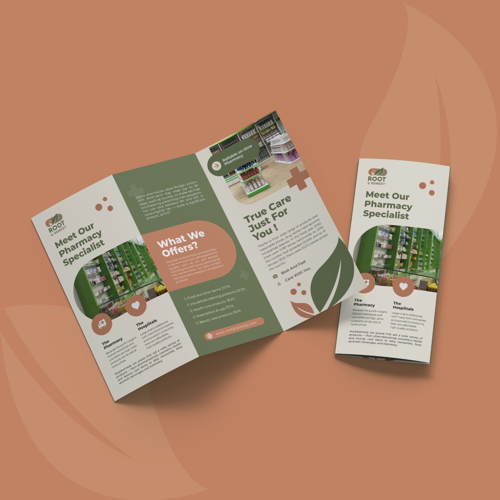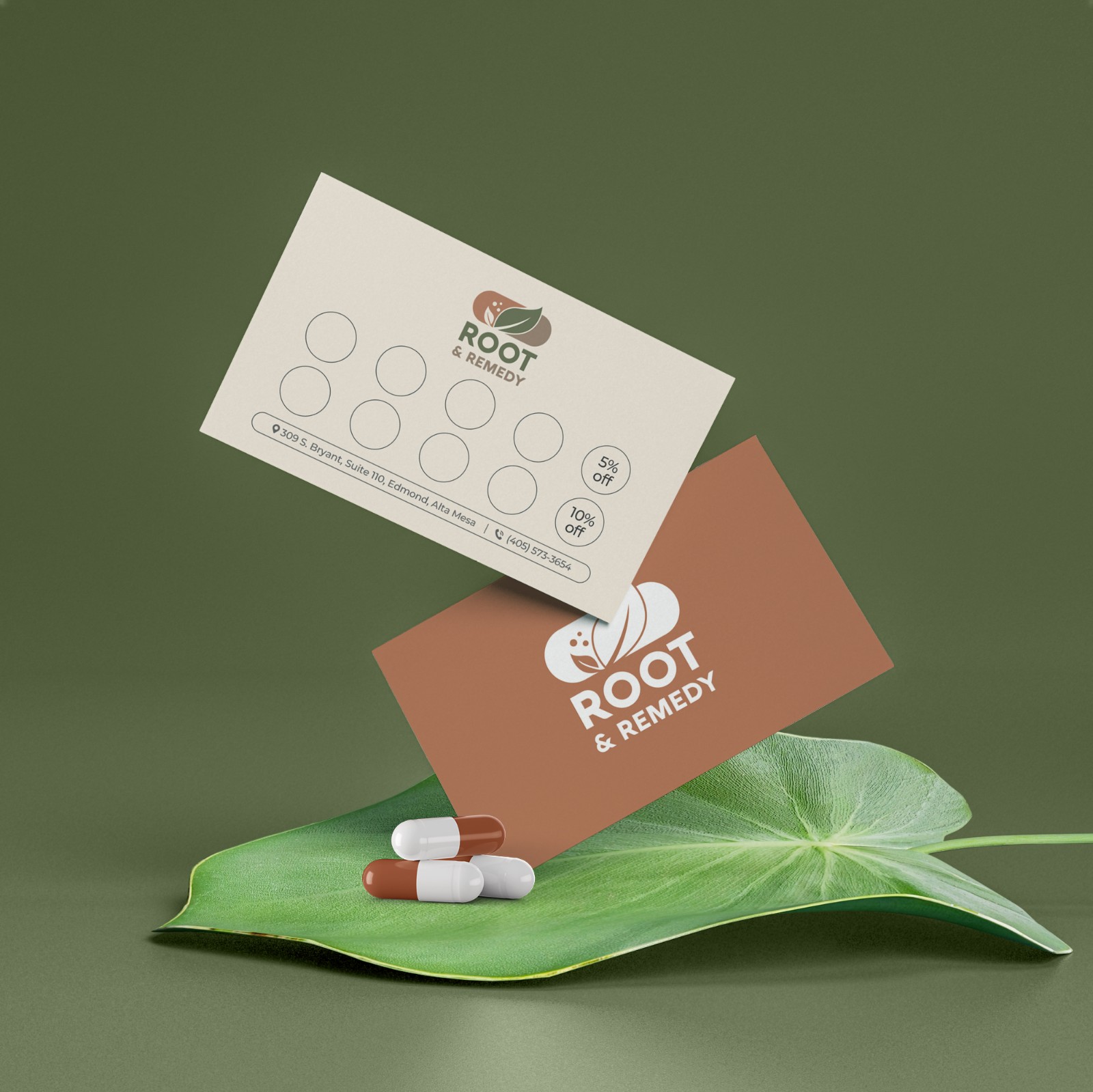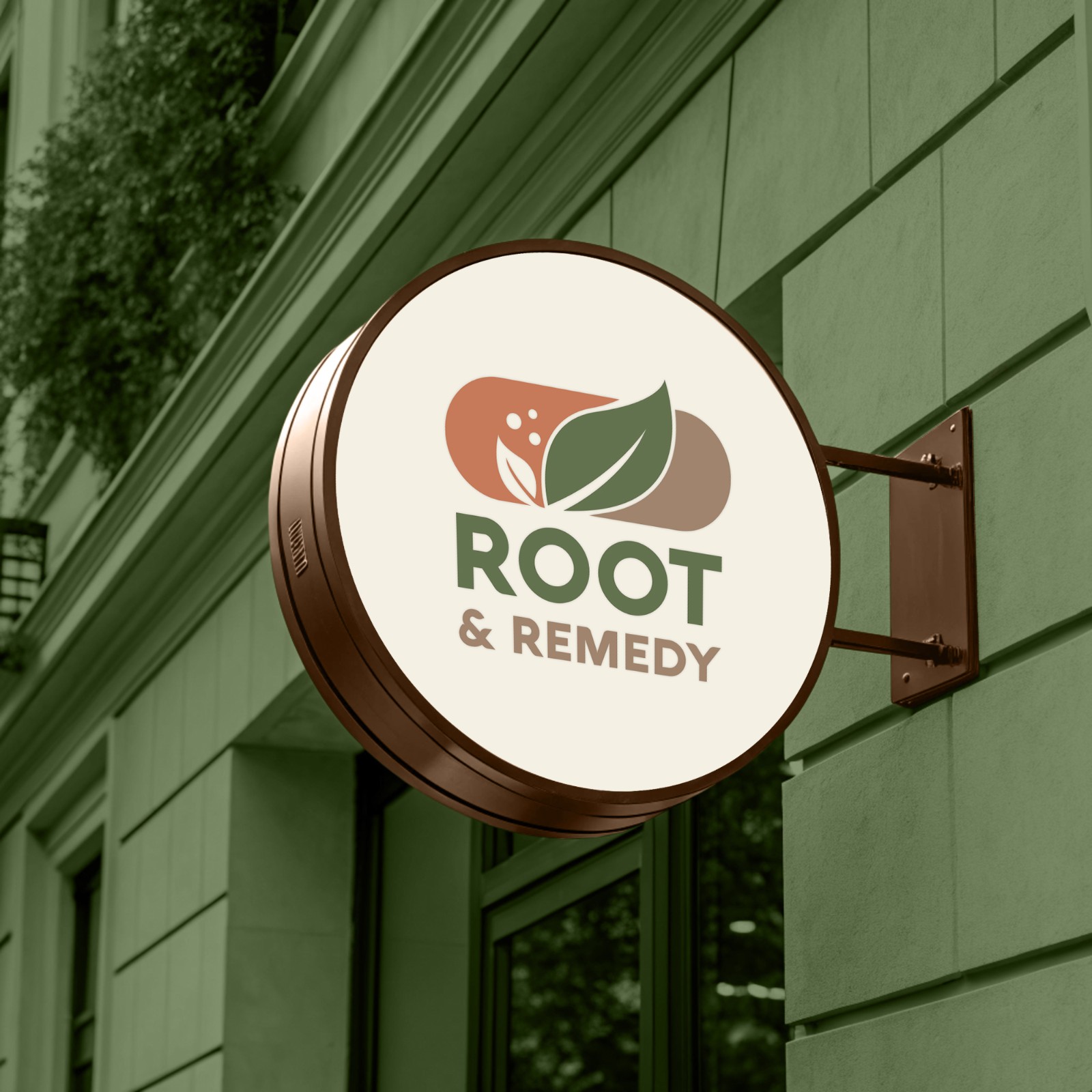 Bảng màu nâu đất – cam đất – xanh thảo mộc được chọn để gợi liên tưởng đến sự ấm áp, cân bằng và organic. Font chữ sans-serif vững chãi nhưng được bo tròn nhẹ, giúp tổng thể vừa chuyên nghiệp, vừa gần gũi như lời hứa về một hành trình chữa lành tự nhiên và bền vững. Logo Root & Remedy không chỉ là dấu hiệu nhận diện, mà là biểu tượng của sự hòa hợp để thiết kế kể lại câu chuyện của thiên nhiên bằng ngôn ngữ của sự an yên.