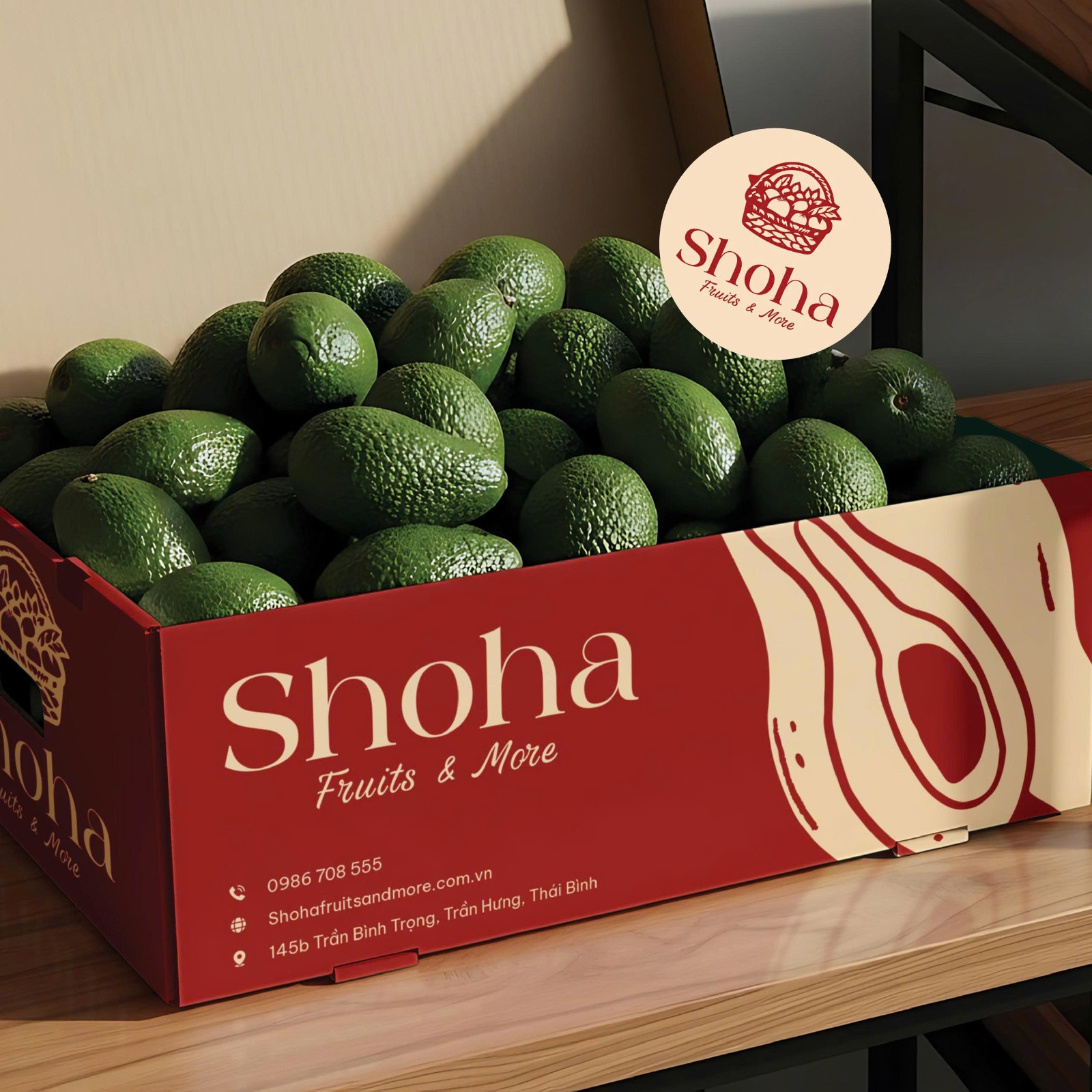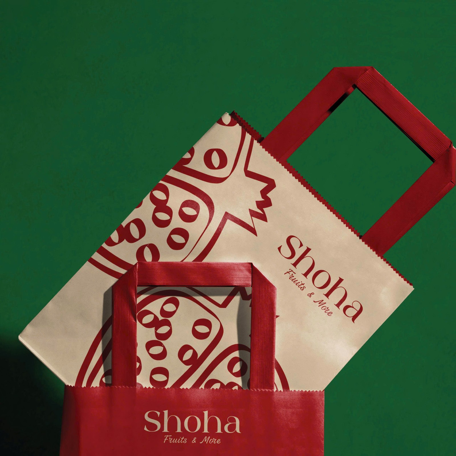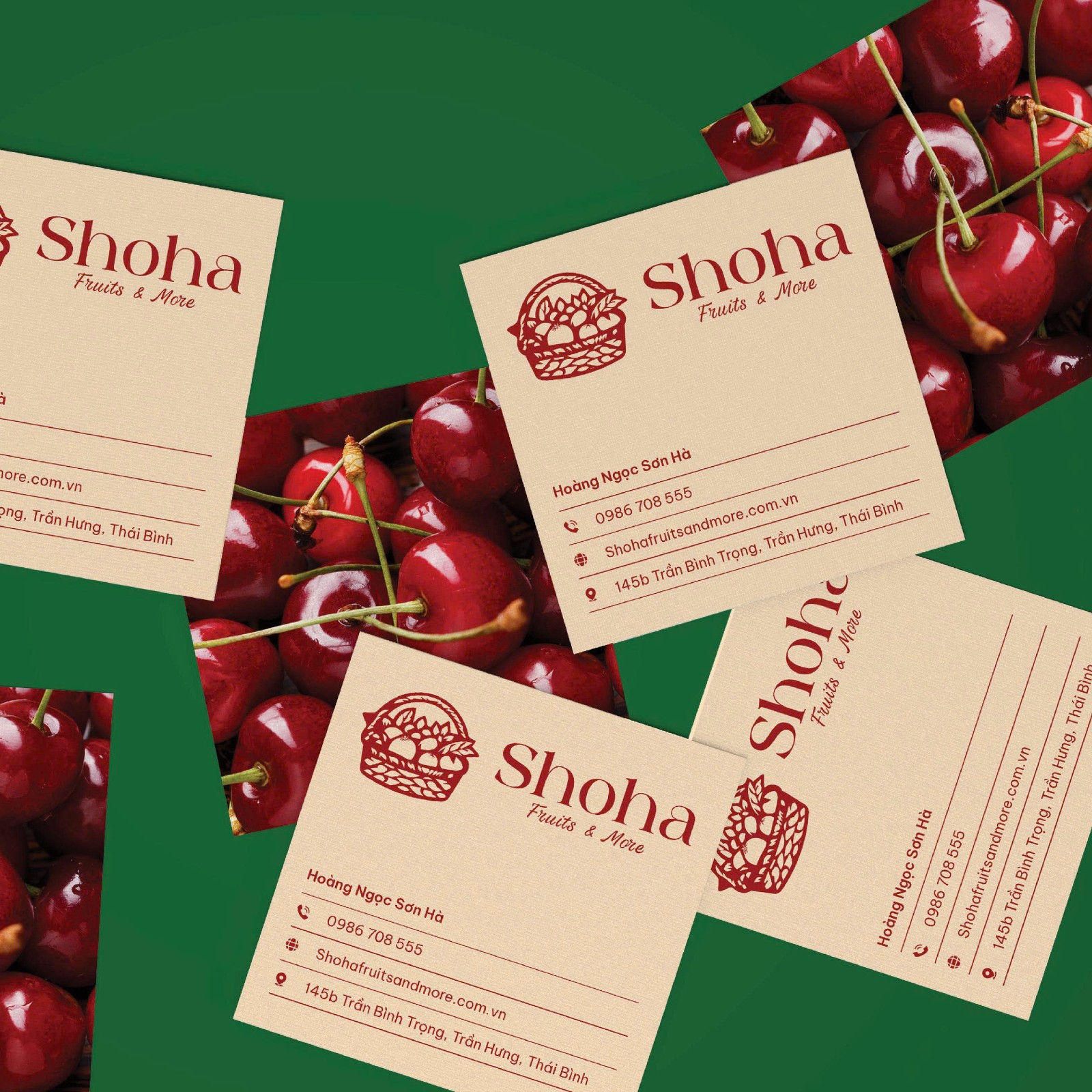 Tông màu đỏ trầm được chọn làm chủ đạo, vừa gợi liên tưởng đến sắc trái chín mọng, vừa truyền tải năng lượng ấm áp và cảm giác tin cậy. Phần typography kết hợp giữa kiểu chữ serif thanh lịch và chữ script mềm mại giúp cân bằng giữa sự tự nhiên và cảm xúc, giữa truyền thống và hiện đại. Logo Shoha không chỉ là dấu hiệu nhận diện, mà còn là câu chuyện về nguồn gốc, chất lượng và tình yêu dành cho trái cây tươi.