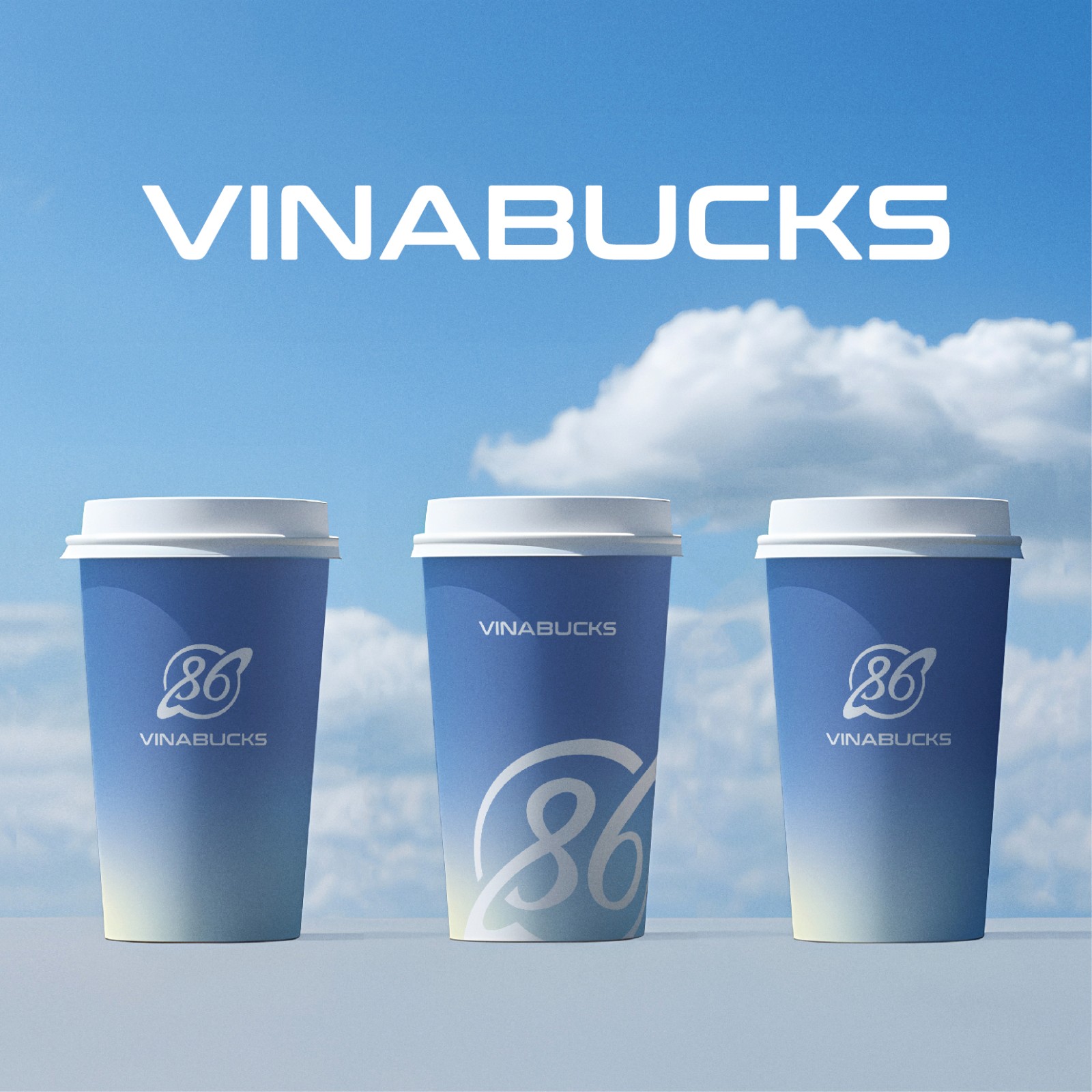 Đường nét bo tròn giúp biểu tượng không bị khô cứng, cân bằng giữa tính công nghệ và thân thiện. Bên dưới biểu tượng là tên thương hiệu VINABUCKS, sử dụng kiểu chữ gọn gàng, hiện đại, đảm bảo khả năng ứng dụng linh hoạt trên bảng hiệu, ly cà phê, quầy giao dịch và các ấn phẩm tại điểm bán.
