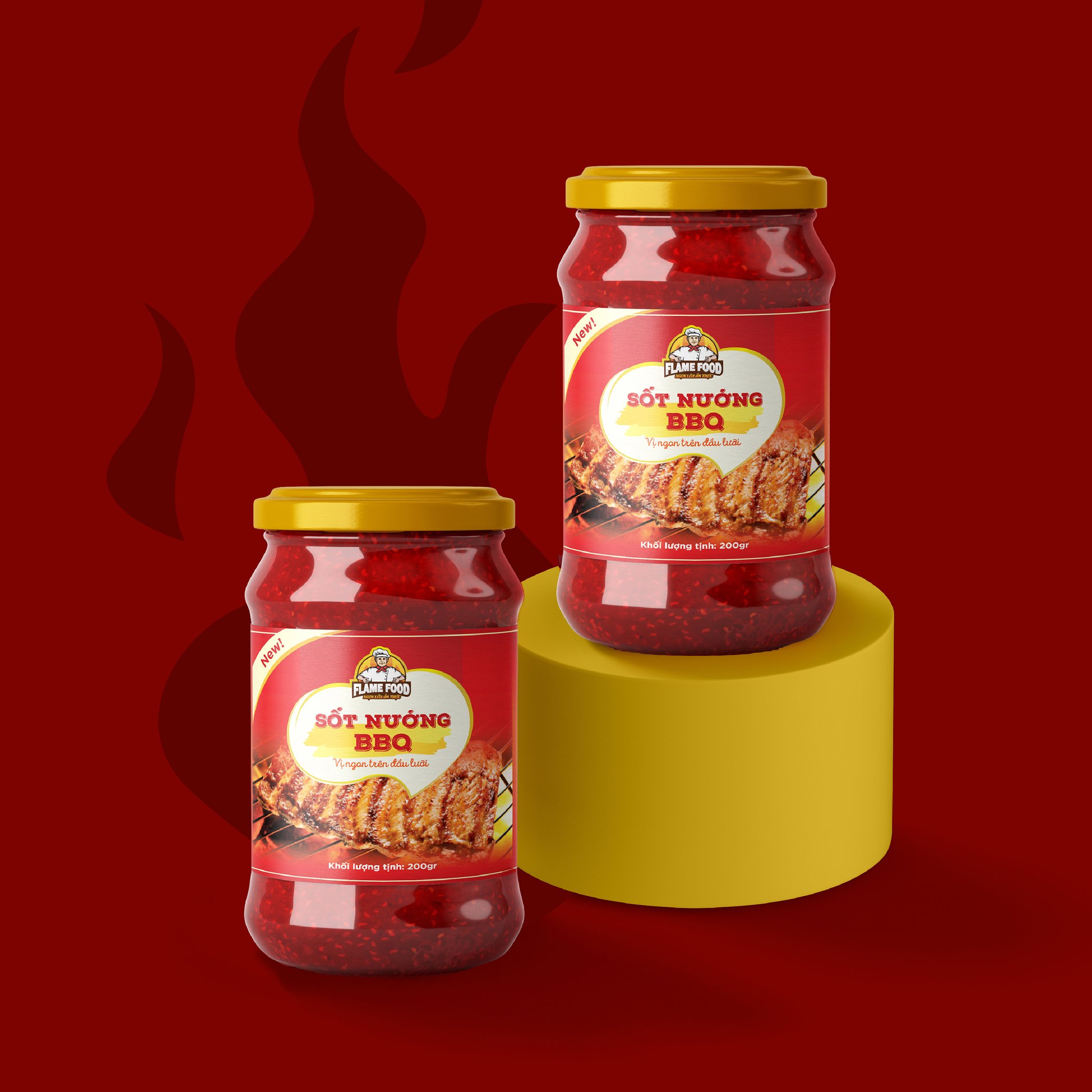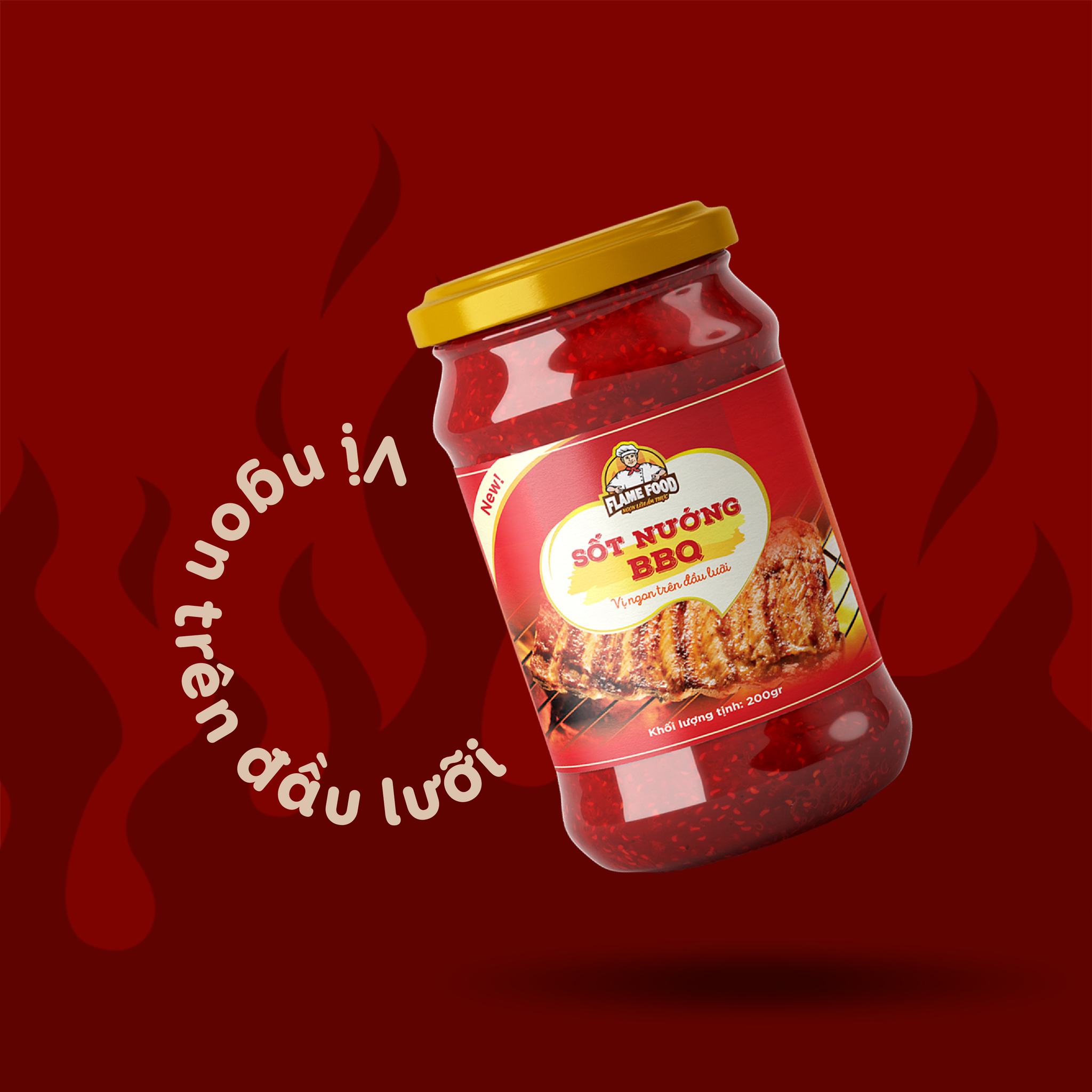 Thiết kế tem nhãn Sốt nướng BBQ của Flame Food không chỉ là một sản phẩm đẹp mắt mà còn là một công cụ marketing mạnh mẽ, giúp thương hiệu Flame Food tạo ra ấn tượng tức thì và kích thích quyết định mua hàng. Nó kể một câu chuyện về hương vị bùng nổ, về những bữa tiệc nướng đáng nhớ.